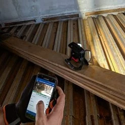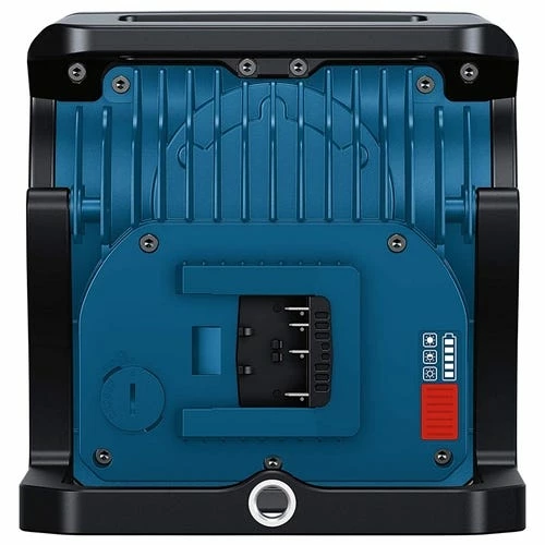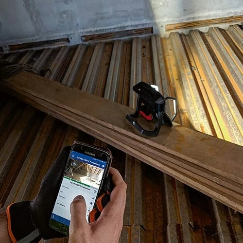 This cordless; portable floodlight with Bluetooth provides high-powered brightness; with 4;000 lumens; which can light up a large jobsite. Built with a solid metal body; the floodlight two heavy-duty bars; which help to guard the LED from impact. Users can dim the light; set it on a timer; check the battery status; and control groups of lights using a mobile device.