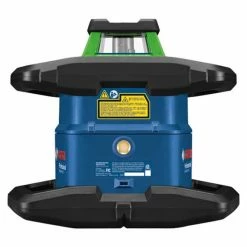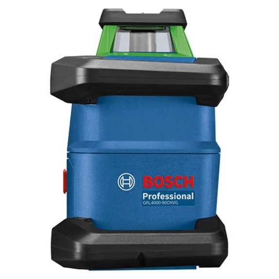 The 18V REVOLVE4000 Connected Self-Leveling Horizontal/Vertical Rotary Laser Kit with uCAL User-calibration delivers a comprehensive solution for precise outdoor and indoor leveling. It has a Dual Dial-In Slope feature that allows slope angle adjustment on both the X and Y axes, for grading applications. This laser is powered by a Bosch CORE18V 4.0 Ah battery, providing extended runtime. Its green-beam laser is up to 4X brighter than standard red beams. The rotary laser is compatible with 4.0 Ah and 8.0 Ah Bosch CORE18V Li-ion batteries. It also features an alkaline adapter to use four (D) cells. The REVOLVE4000 is engineered with a cage overmold and an innovative handle design, and it is built to IP68 dust- and water-protection standards. It features Bluetooth® connectivity to a connected device, linking to the Bosch Leveling Remote App.