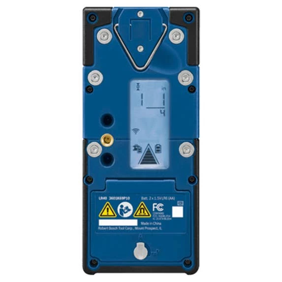 The Bosch LR40 Rotary Laser Receiver is designed to increase the GRL4000-80CH and GRL4000-80CHV rotary laser detection up to 2,000 Ft., with a dual-sided backlit LCD display for use in darker areas or outdoors on both sides of the receiver. It has built-in X and Y-axes buttons that allows for elevation and cut-and-fill calculations in both axes up to ±8.5°. The display illuminated large, easy-to-see indicators, including up/down arrows, center line, accuracy level, battery levels and audio signal. It also has LED indicators, to provide easy visual readout and simple operation. The oversized laser detection area helps find the laser beam faster, making it easier to start setting level. The receiver provides convenience features such as built-in magnets for secure attachment to metal surfaces, an adjustable audio indicator, intuitive six-button keypad, receiver vial, attachment hook and ergonomic soft grip.