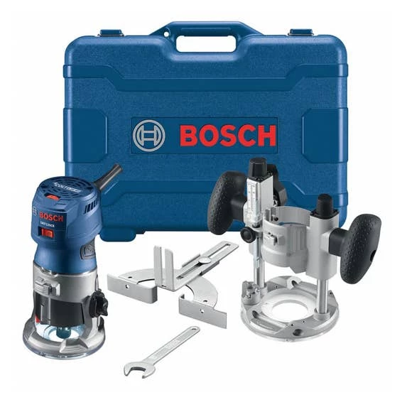 The Bosch GKF125CEPK Colt 1.25 HP (Max) Variable-Speed Palm Router Combination Kit pairs a tool that lets you feel the power in your hand with a fixed base and a plunge base. Far more than a laminate trimmer, it is the ideal tool for rounding-over railings, hinge mortising, decorative edge forming and more, as well as laminate trimming.