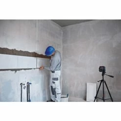 The Bosch GCL100-40G Green Beam Self-Leveling Cross-Line Laser with Plumb Points uses green-beam technology; which emits green lines and points up to 4X brighter than standard red beams. This gives the laser a working range for the lines of up to 165 Ft. The laser produces vertical; horizontal; cross-line modes; as well as upward and downward green plumb points. The tool can project two lines independently or together; for a broad array of alignment and leveling applications.