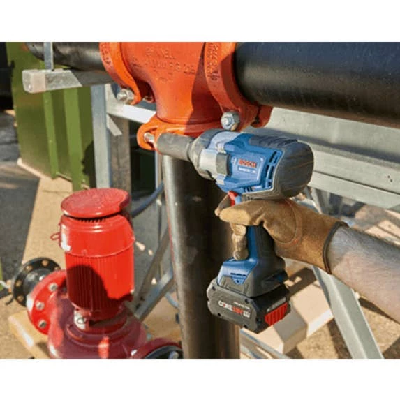 The Bosch GDS18V-770 18V PROFACTOR 3/4 In. Impact Wrench with Friction Ring and Thru-Hole is designed for breaking free and driving large bolts, nuts and anchors quickly. It is part of the PROFACTOR System, which pairs BITURBO Brushless Technology with a CORE18V PROFACTOR battery. BITURBO Brushless Technology is a high-performance motor and drive-train system designed to deliver power comparable to high-demand corded tools. The tool delivers up to 770 Ft.-Lbs. fastening torque and 1,250 Ft.-Lbs. breakaway torque, while maintaining long runtime. It offers controlled power output, with three speed/torque settings (0-800/1,200/1,750 RPM).