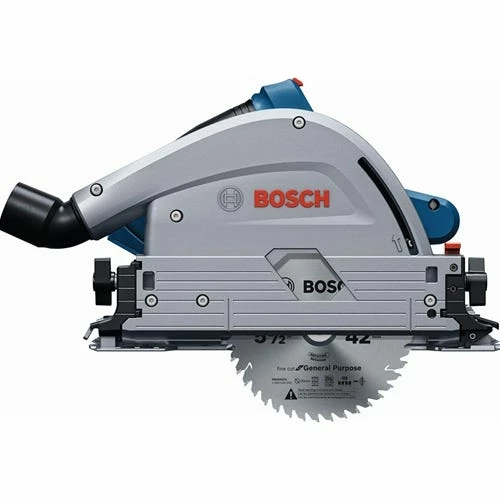 The Bosch GKT18V-20GCL Track Saw with Plunge Action is a compact; one-battery cordless track saw with the performance of a corded track saw. It delivers precise and clean cuts in wood and wood-based sheet goods; such as laminated particle boards and plywood. It has a uniquely compact design; with a one-battery power system and a 5-1/2 In. saw blade; for superior mobility. For close-to-wall cuts; it has a minimum distance between the blade and the wall is only 0.4 In. It is compatible with the Bosch track-guidance system; which helps this saw make fast straight cuts.